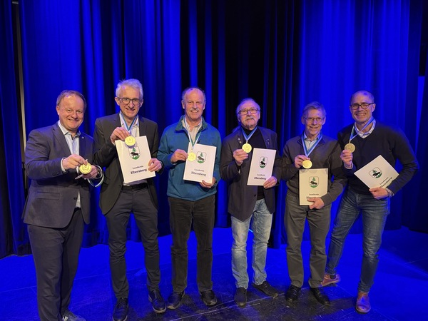 Im Vergleich zu den Vorjahren war die Gruppe der TSV-V-Leichtathleten, die von der BLSV-Kreisvorsitzenden Ingrid Golanski und Landrat Robert Niedergesäß (l.) geehrt wurden, diesmal kleiner. Anwesend waren (v.l.n.r.) Ingo Kemmerzell, Albert Süß, Helmut Dusch, Gerhard Zorn und Dirk Schönmetzler. Leider nicht anwesend sein konnte Martin Fischer.
