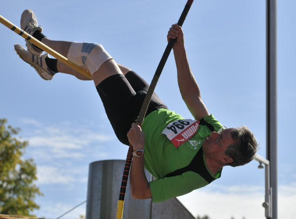 Da ich neugierig bin, habe ich fast alles ausprobiert – vom Marathon über Hindernislauf bis hin zum Zehnkampf. Früher lag der Fokus auf Mittelstrecke und Stabhochsprung, heute reicht zum längeren, schnellen Laufen leider die Puste nicht mehr, sodass ich lieber Mehrkampf, insbesondere Speerwurf, mache.